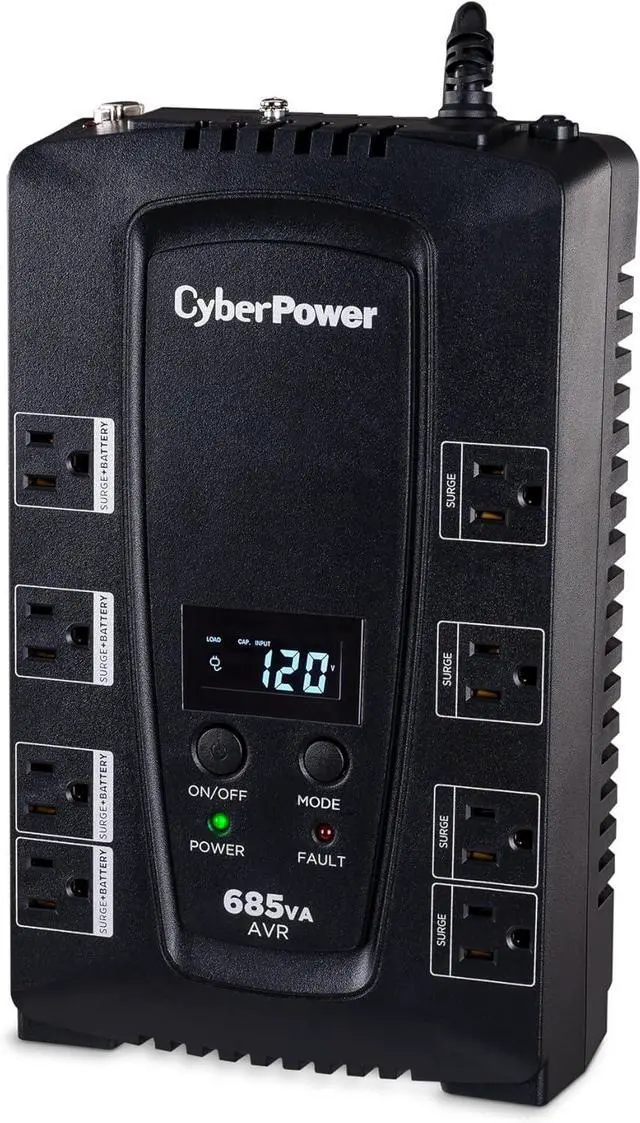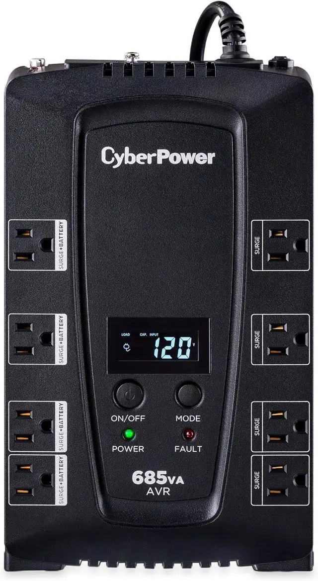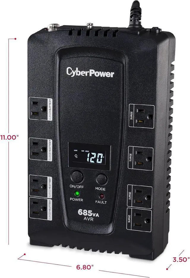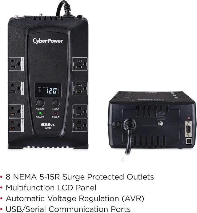 600VA/340W Intelligent LCD Battery Backup Uninterruptible Power Supply (UPS) System uses simulated sine wave output to protect desktop computers, workstations, networking devices and home entertainment equipment