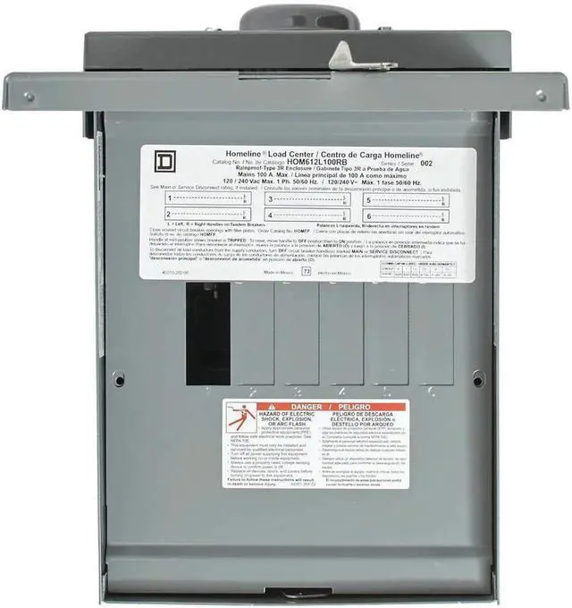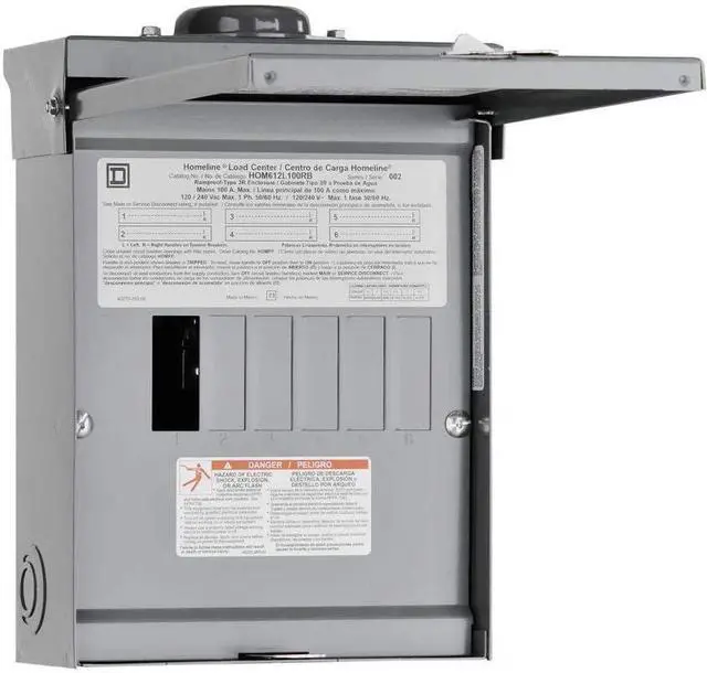 Square D by Schneider Electric HOM612L100RBCP Homeline 100 Amp 6-Space 12-Circuit Outdoor Main Lugs Load Center