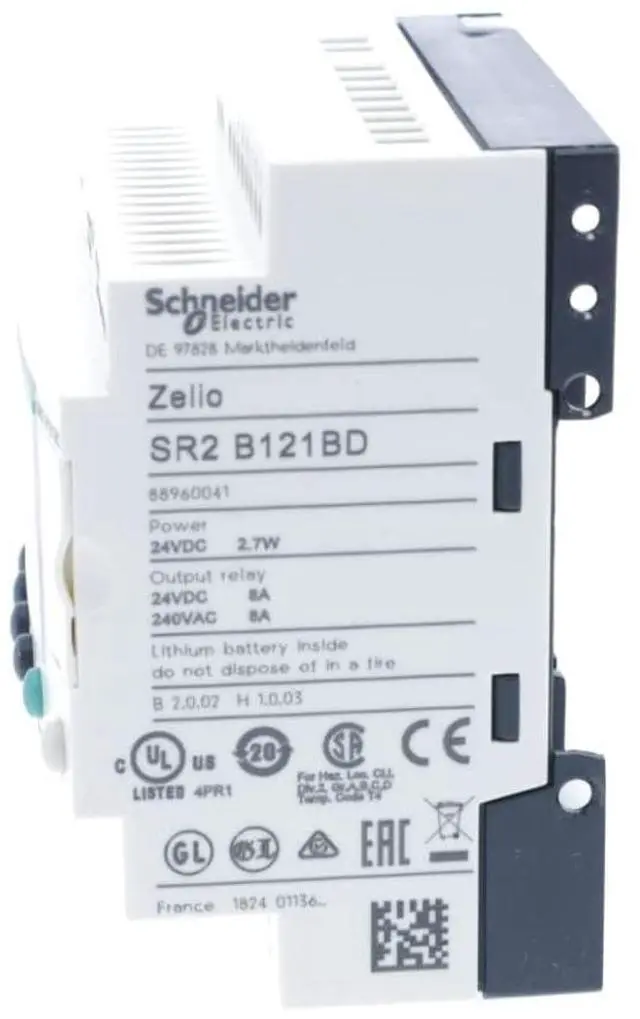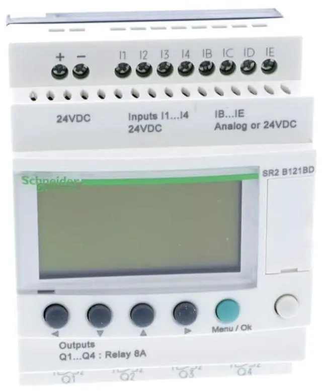 Schneider Electric - Zelio Logic SR2 Compact Smart Relay/Programmable Controller, 12 Inputs/Outputs, 24V DC, Integrated Clock Display, 4 Relay Outputs