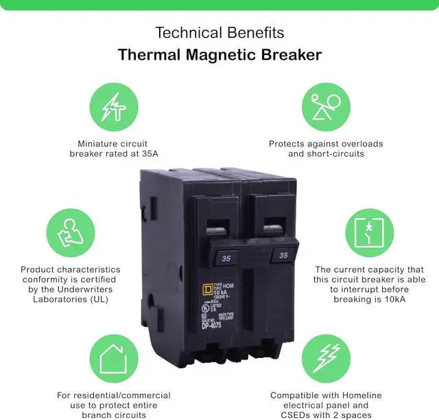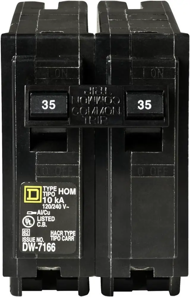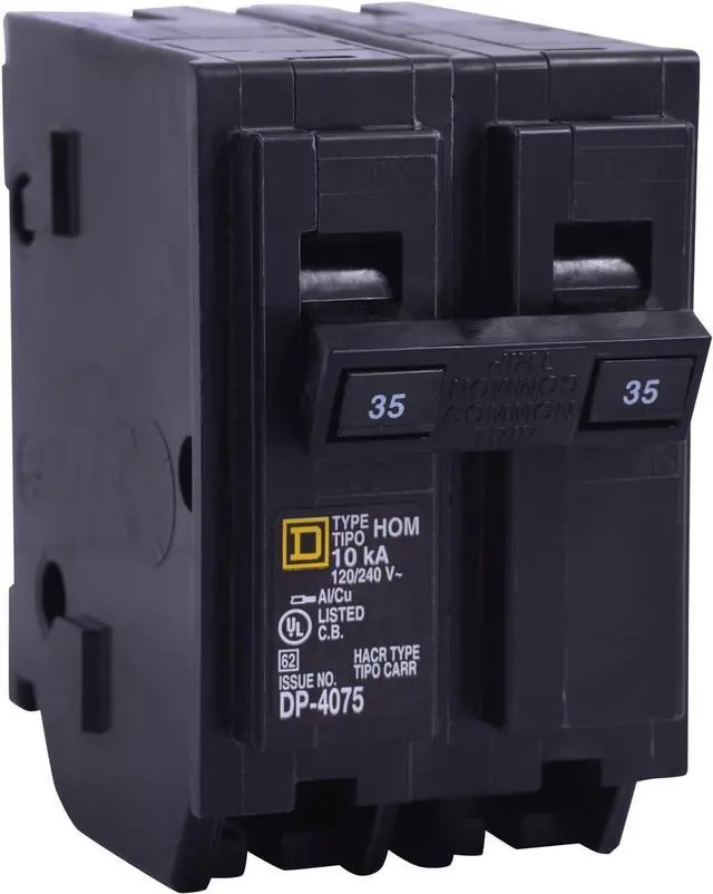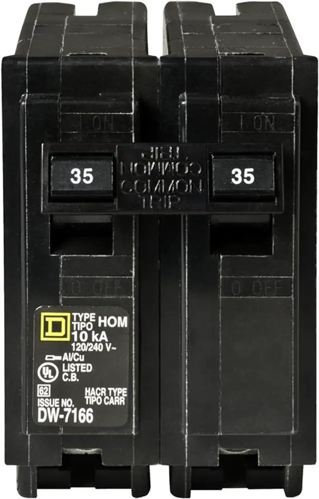 Homeline 35 Amp two-pole circuit breaker Plug-on design, easy to install Compatible with Homeline load centers and CSED devices 120/240 Vac Rated for 10,000 AIR