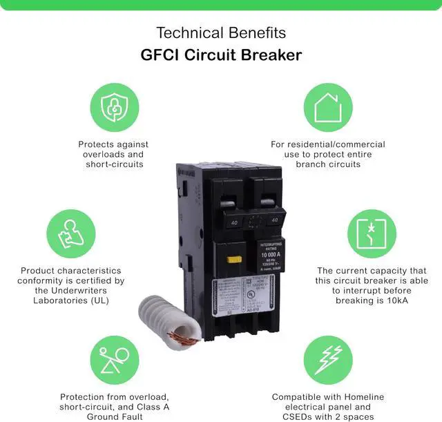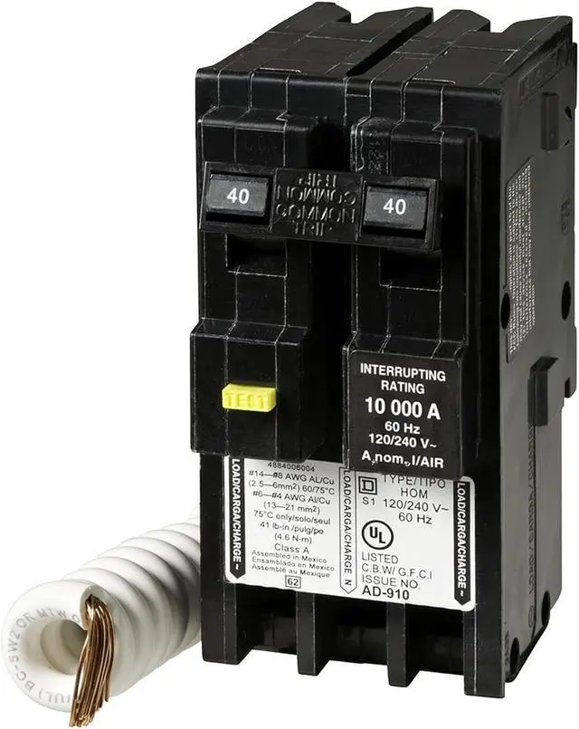 40 AMP TWO-POLE CIRCUIT BREAKER: This circuit breaker delivers 60A protection with a two-pole configuration, ideal for larger appliances like dryers, ranges, and air conditioners that require 240V branch circuits