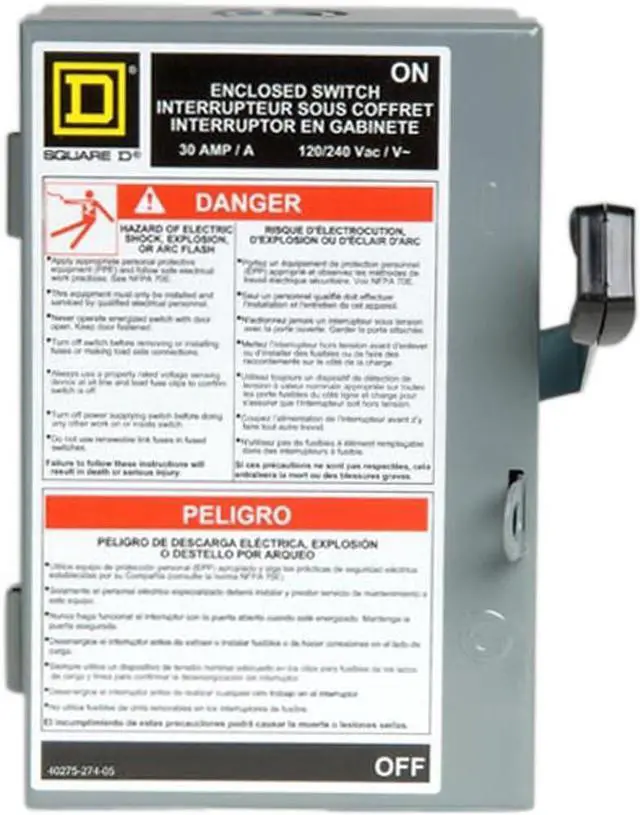 Square D by Schneider Electric L211N 30 Amp 120/240-Volt Two-Pole Indoor Light Duty Fusible Safety Switch with Neutral
