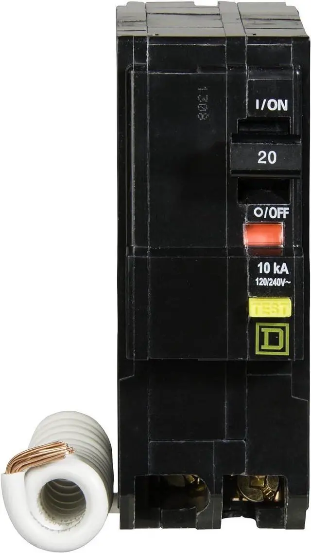 Schneider Electric - Square D Miniature Circuit Breaker, QO, 20A, 2 Pole, 120/240VAC, 10kA, Plug-in Mounting, Qwik-Gard, 6mA Ground Fault A, w/Pigtail, UL Listed, CSA Certified