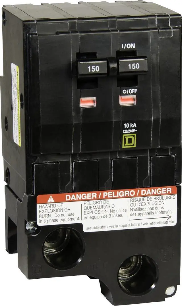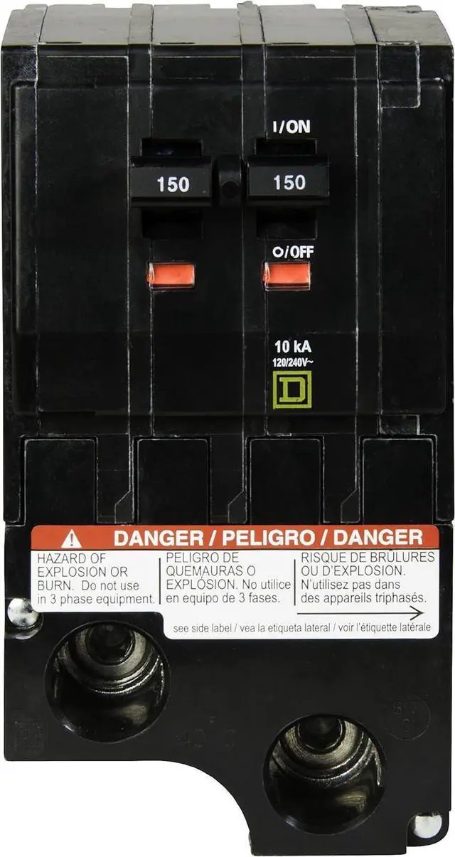 QO 150 Amp two-pole circuit breaker Plug-on design, easy to install Compatible with QO load centers, CSED's and NQOD panel boards Rated for 120/240 VAC Rated for 10,000 AIR
