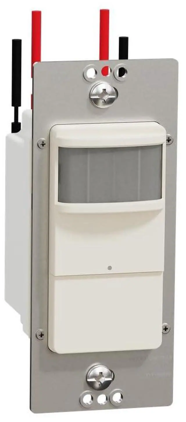 Square D X 15A Single Pole/3-Way PIR 180° Occupancy/Vacancy Sensor Light Timing Control w/Manual On/Off Switch, Back Wire Clamps, Matte Light Almond