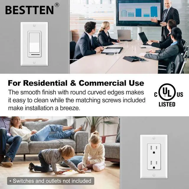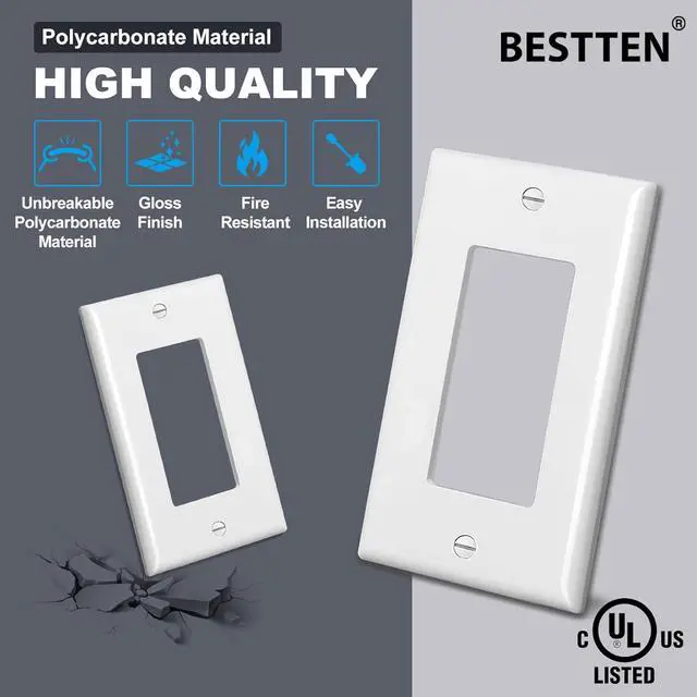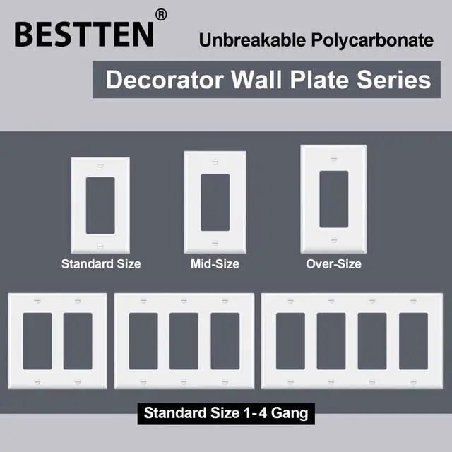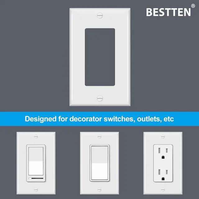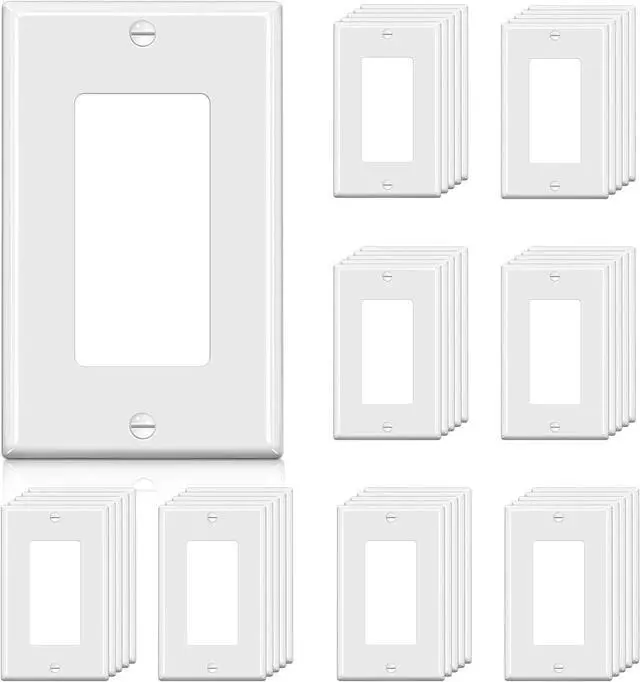 Perfect with decorator/USB/GFCI receptacle outlets, rocker light switches, dimmer switches and sensor switches. 1-4 gang wall plates available