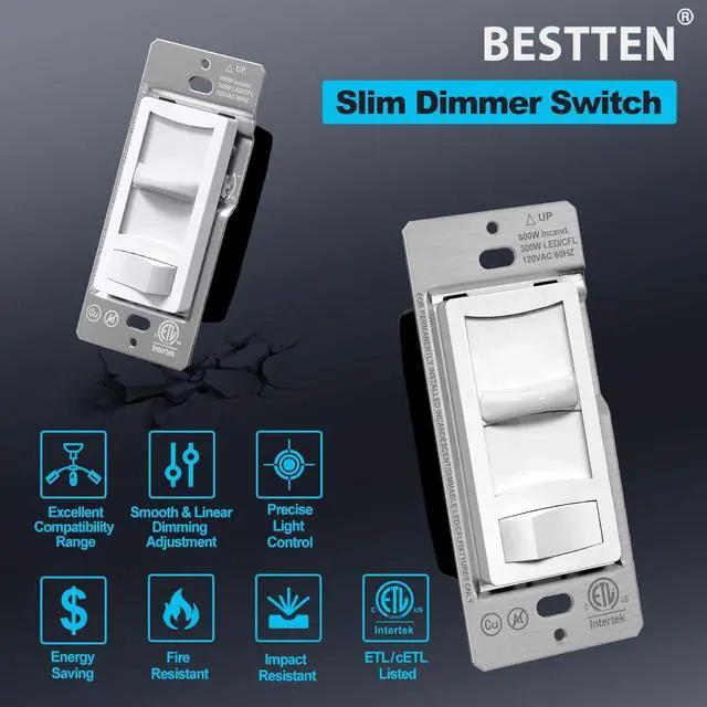 Full capacity dimmer with Max 300W dimmable LEDs and 600W of incandescent or halogen bulbs