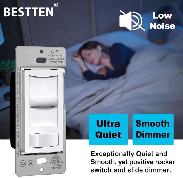 Exceptionally smooth and quiet, yet positive rocker switch and slider dimmer