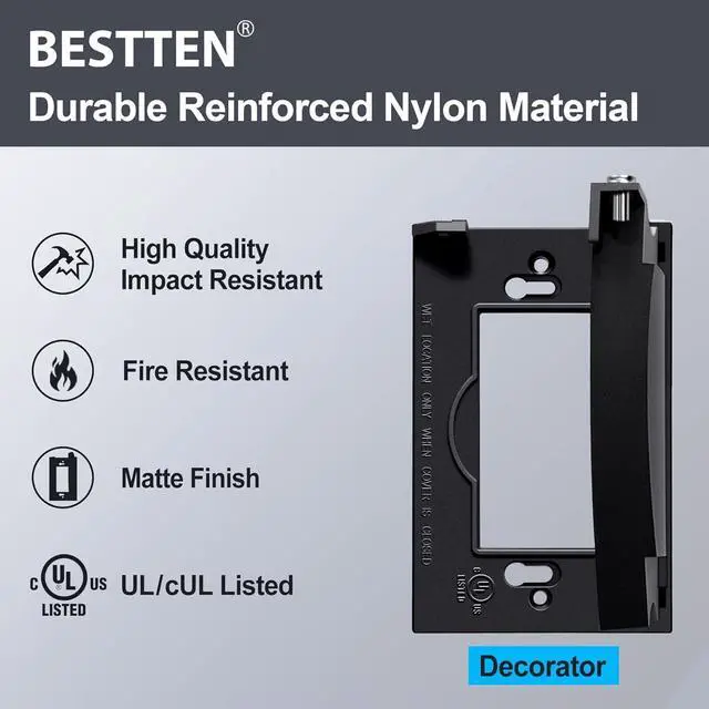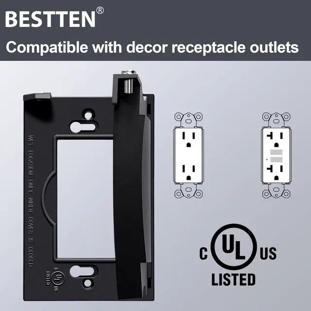 Auto-closing cover shields dust and moisture, perfect for outdoor or bathroom use
