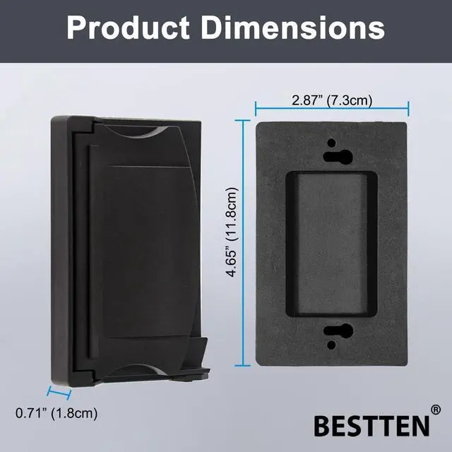 H4.65 x W2.87 x D0.71, 1-gang standard size, decorator wall plate with flip cover, black