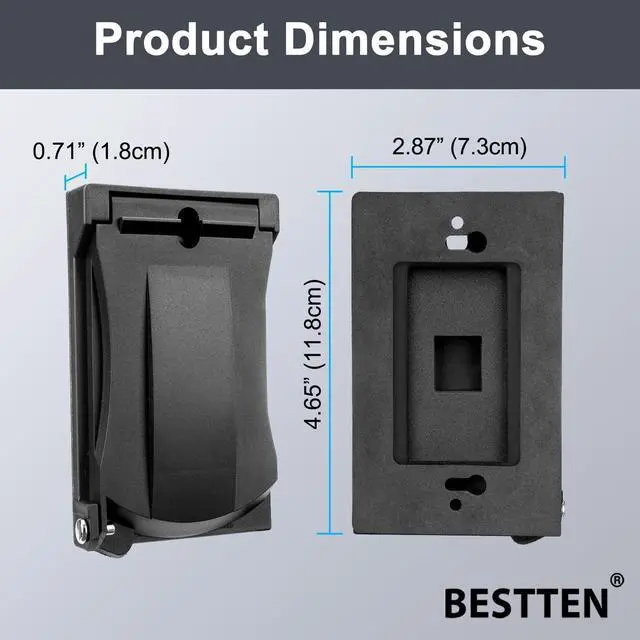 H4.65 x W2.87 x D0.71, 1-gang standard size, decorator wall plate with flip cover, black