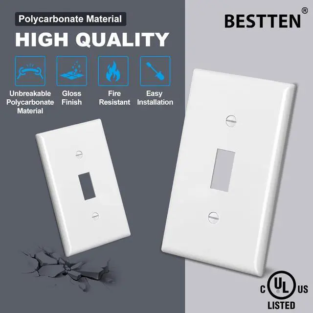 BESTTEN provides a variety of wall plates with multi-gang options to match for any home decor. Made perfectly flat to lay flush against thewall. Smooth finish is easy to clean and scratch resistant.