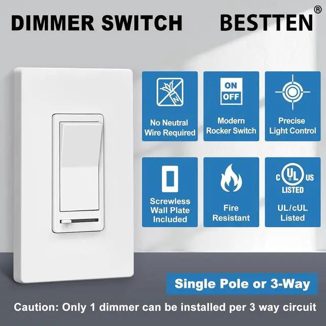 Suitable for single pole or 3-way applications. Caution: Only 1 dimmer switch can be installed in a 3-way circuit. Do not use with fans
