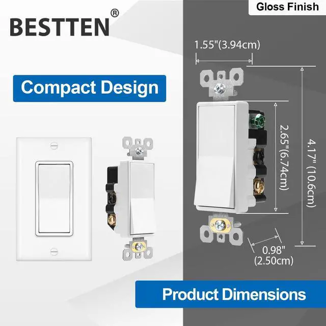 BESTTEN provides all types of light switches - decorator switch, toggle switch, double switch, combination switch, dimmer switch