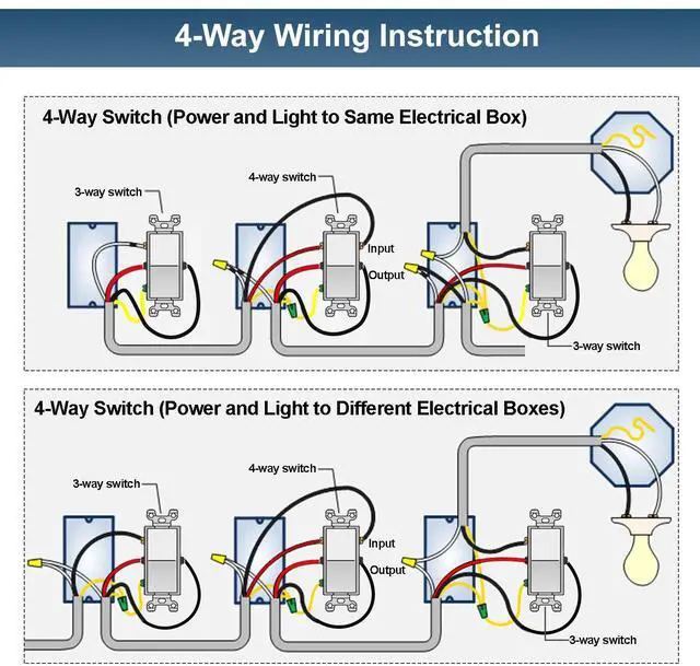 4-way electrical light switch, rating 15A 120-277V, self-grounding, decor wallplates included, gloss white, cUL listed