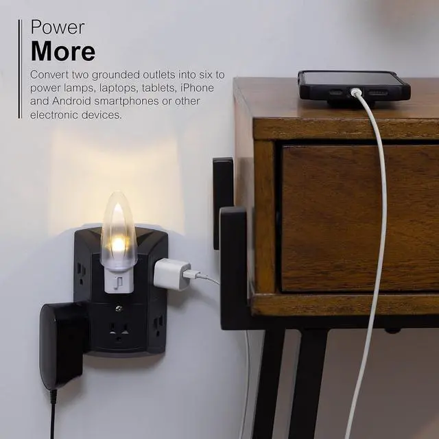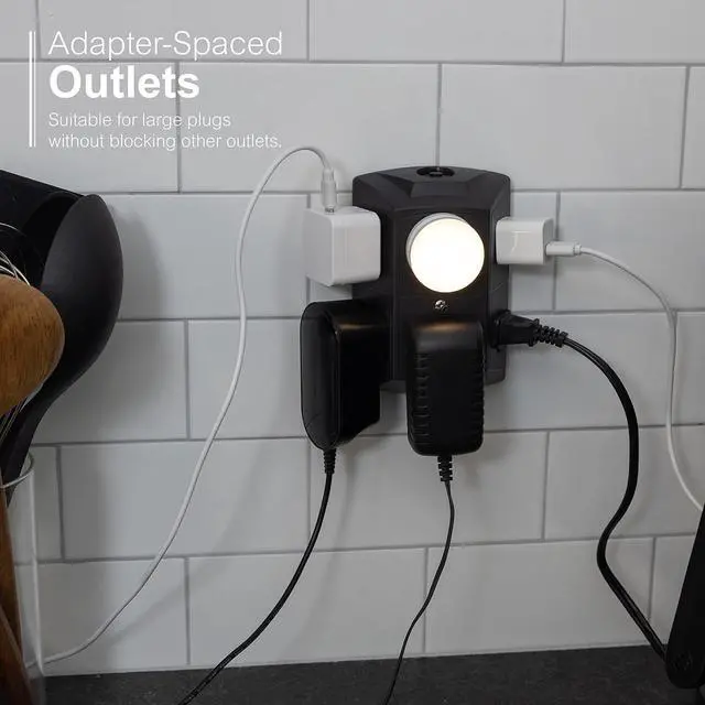 Space-Saving Includes 4 side-access outlets for easy connection in tight spaces or behind furniture