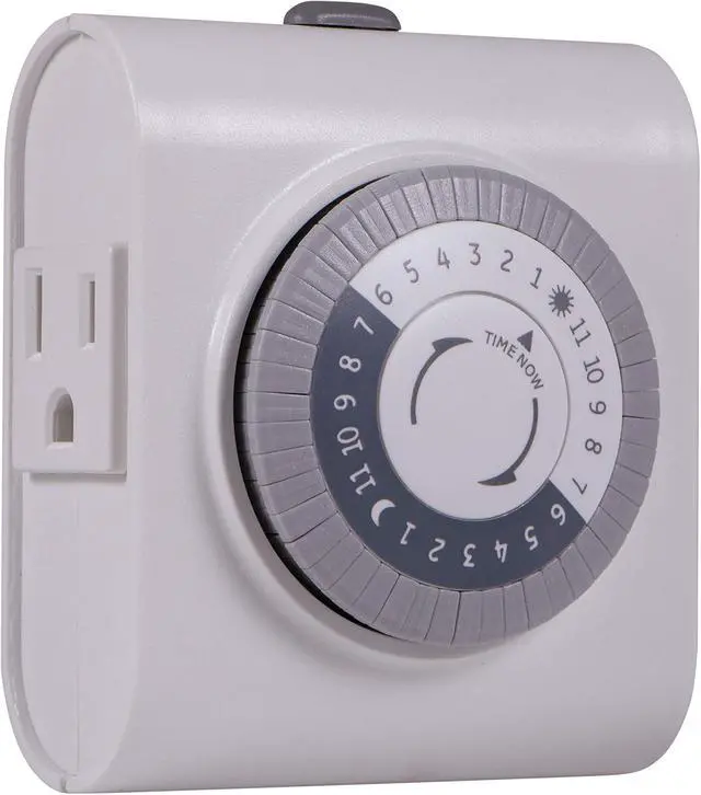 Lighting Compatibility - The plug-in mechanical timer is intended for indoor use only. LED, CFL, incandescent and halogen bulb compatible.