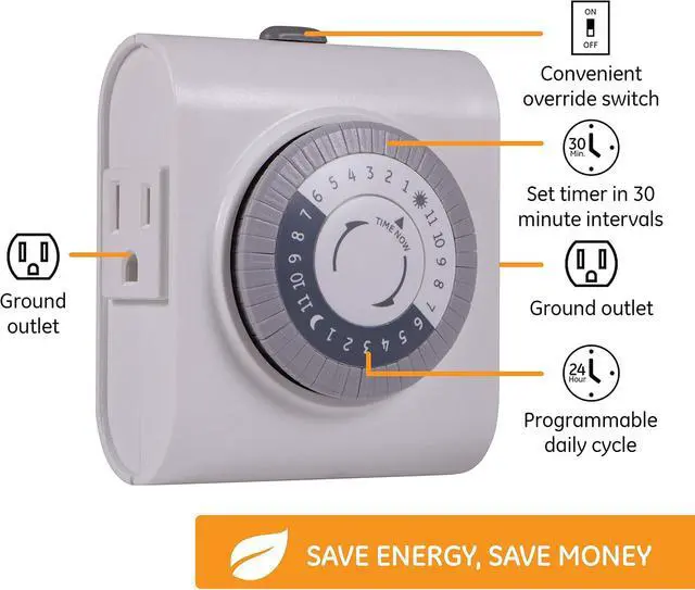 24-Hour Timer - The timer allows you to set on and off times at 30 minute intervals for a total of 48 on/off options that will cycle daily without having to reset.
