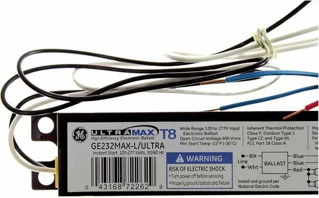 GE Lighting 72262 GE232MAX-L/ULTRA 120/277-Volt UltraMax Electronic Fluorescent T8 Multi-Volt Instant Start Ballast 2 or 1 F32T8 Lamps