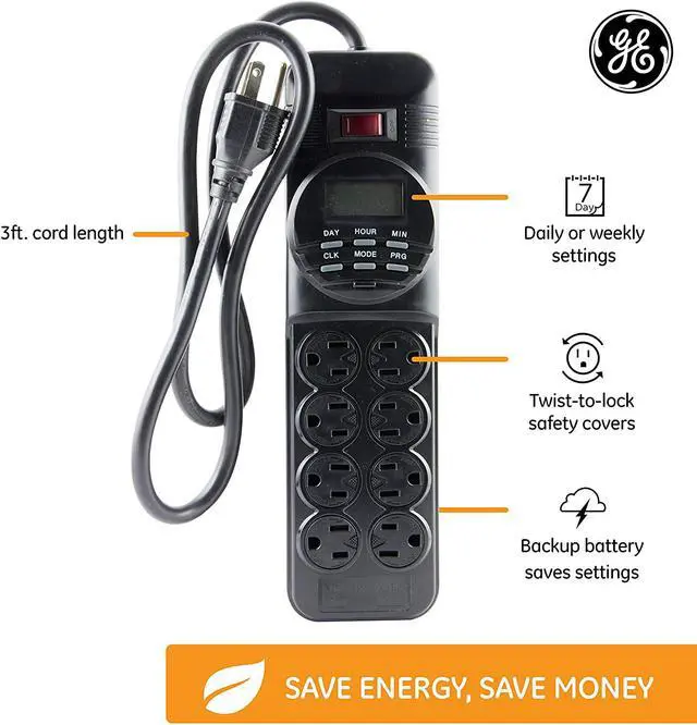 SAVE $ and POWER power strip eliminates standby power by disconnecting the power from the devices in the 4 timed outlets saving you money on your energy bill.