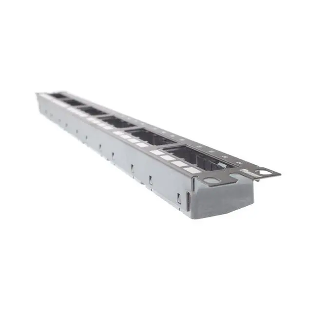 Accepts Mini-Com modules for UTP, fiber optic and audio/video, which snap in and out for easy moves, adds and changes