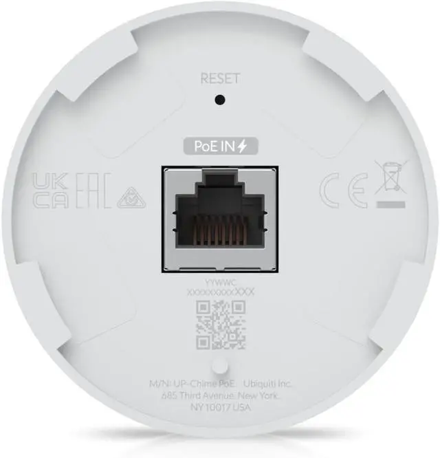 PoE-powered smart chime designed to provide audible notifications for UniFi doorbells and access hubs Plug-and-play installation with integrated speaker and buzzer for clear alert sounds