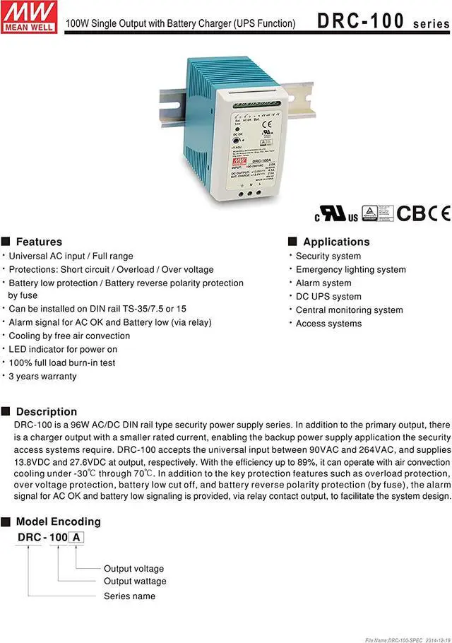 Single output with battery charger (UPS function)