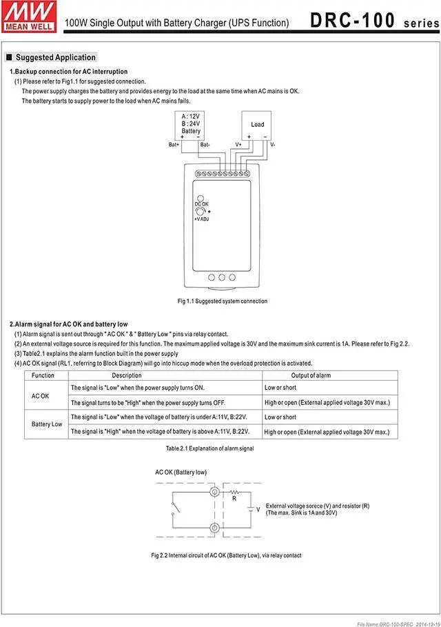 Alarm signal for AC OK and battery low