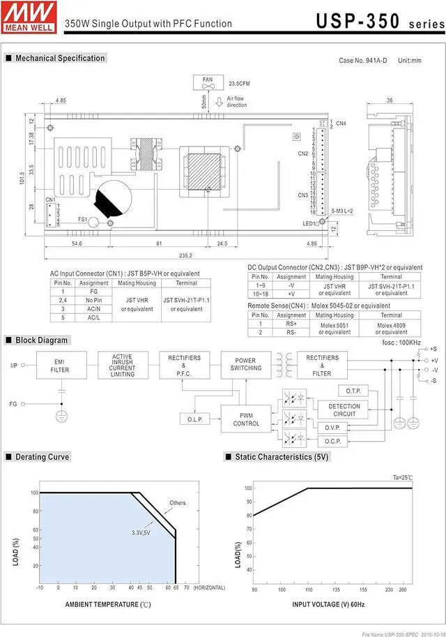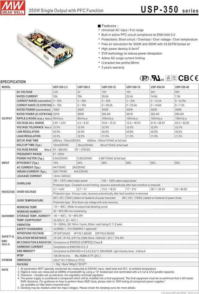 High power density: 5.5W/in3 (USP-150);4.7W/in3 (USP-225); 6.32W/in3 (USP-350);6.2W/in3 (USP-500)