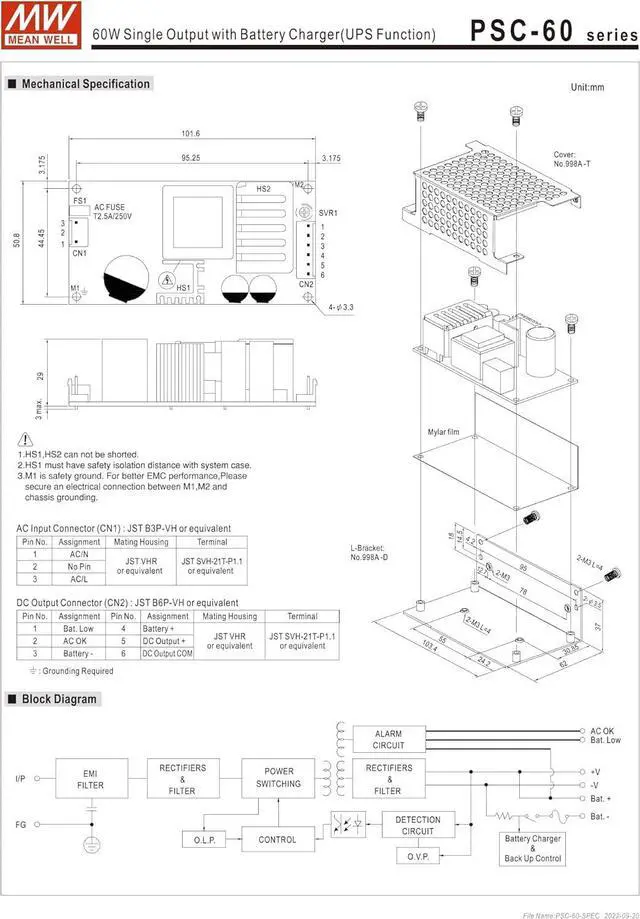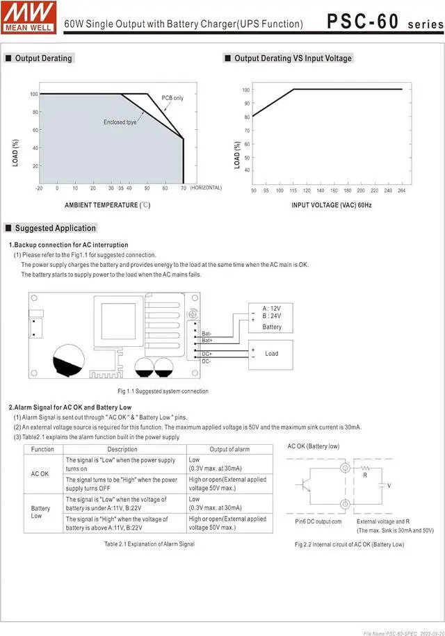 Mean Well PSC-60 Series PSC-60A PSC-60B 60W Single Output with Battery Charger(UPS Function) (PSC-60B)