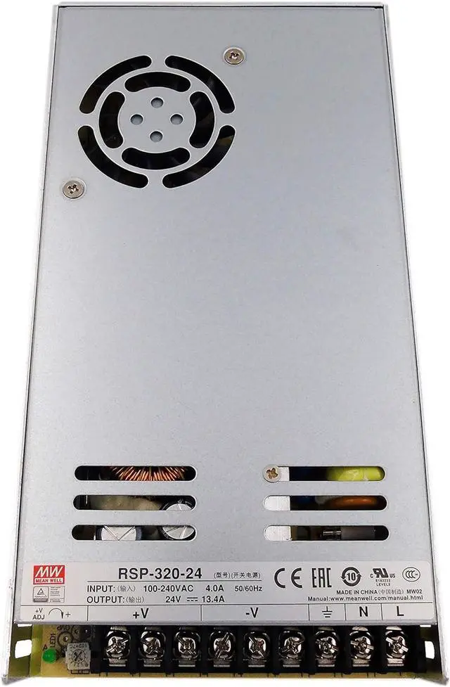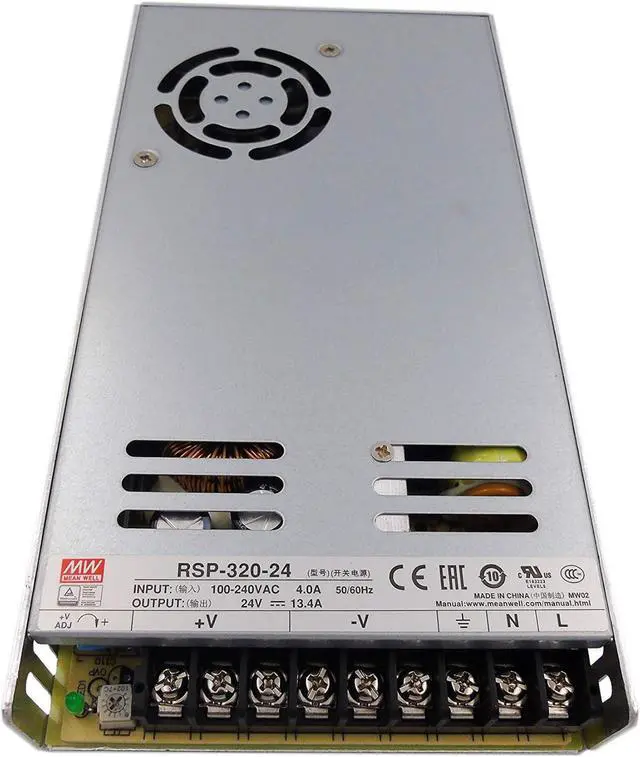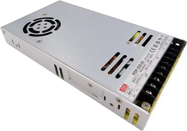 The RSP-320 is 40% smaller in size compared to corresponding models. With 90% of high efficiency and the PFC function the RSP-320 can be cooled by the built in long life DC fan from -30 to +50 ambient temperature under full load condition and up to +70 by suitable de rating. This Power supply comes with protection for short circuit, over load, over voltage and over temperature. The RSP-320 is suitable for general industrial control system, mechanical and electrical industry, instruments, LED display, or any systems require low profile installations. 30mm low profile design for 1U installation Universal AC input range 88264V Built-in active PFC function High efficiency up to 90% Forced air cooling by built-in DC fan -30 to +70 operating range Protection: Short circuit / Overload / Over voltage / Over temperature LED indicator