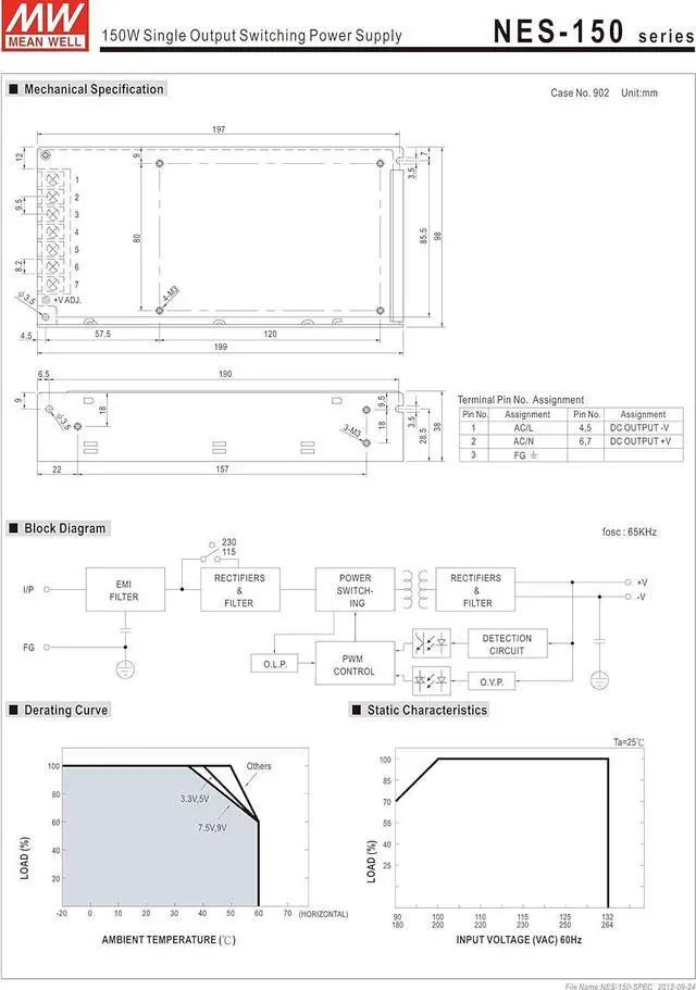 Universal AC input / Full range(NES/D-100, NES-150 AC input selectable by switch) Protections: Short circuit / Overload / Over voltage Cooling by free air convection 100% full load burn-in test 2 years warranty