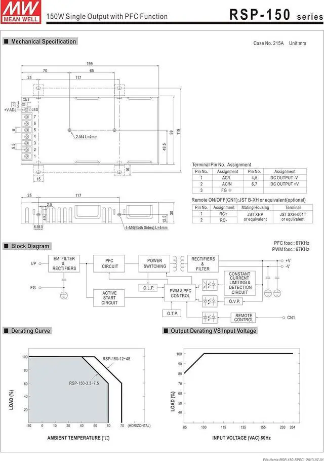 Built-in constant current limiting circuit (RSP-75/100/150)