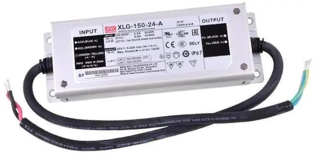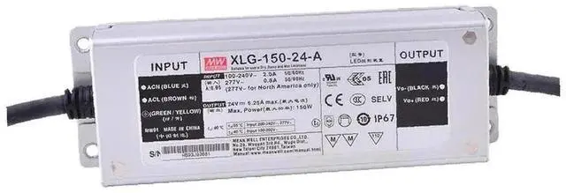 Mean Well XLG-150-24-A LED Power Supply CV+CC 150W 16.8-24V 6.25A, Io Adj by Potmeter, Wire Leads, Input: 100~305VAC, 142~431VDC