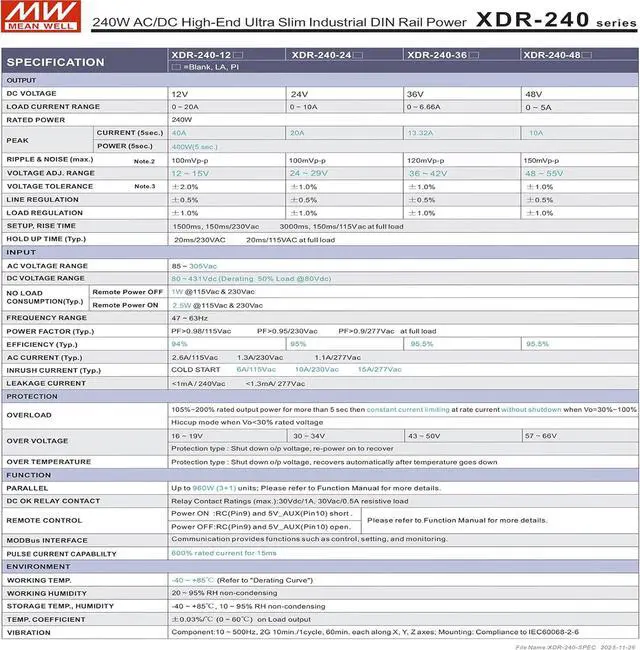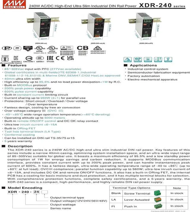 • Ultra Slim DIN Rail Design: Compact 40mm narrow casing optimizes system installation space while delivering 240W power output