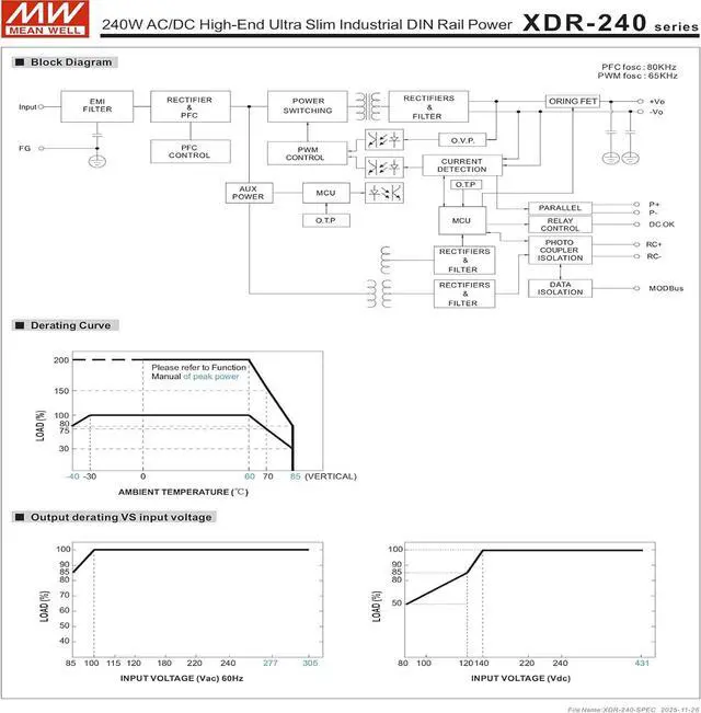 • Universal Input Voltage: Ultra-wide input range of 85~305Vac makes it suitable for global use across different power standards