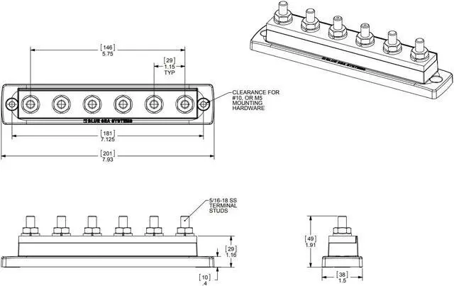 250A MaxiBus BusBar with 6 studs (part number 2126)