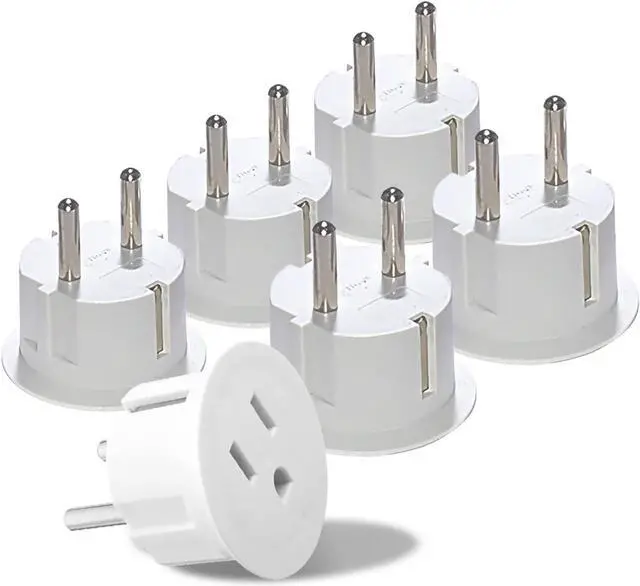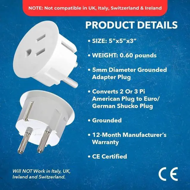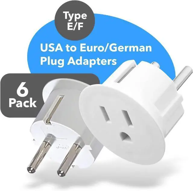 Compact and Travel Friendly This European travel plug adapter is perfect for traveling and using with your Phone, laptop, camera and other dual voltage chargers. This European plug adapter converts 2 or 3 pin American plug to European (Schuko) plug