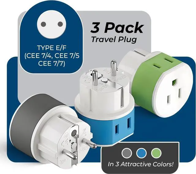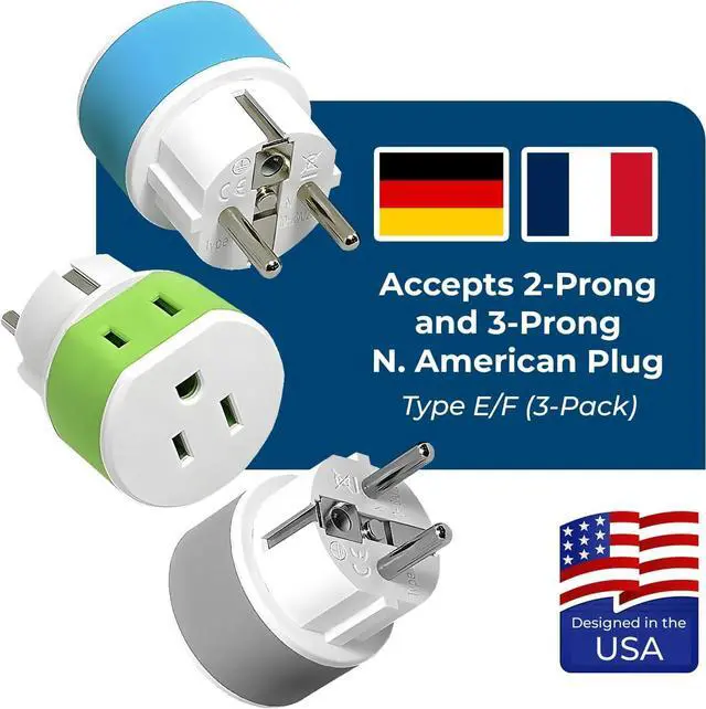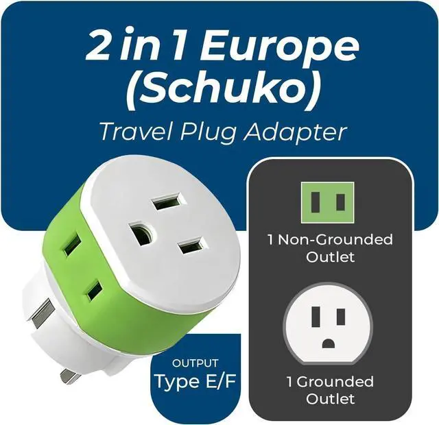 Outlet adapter Type E/F Plug - works in countries such as Germany, Russia, Spain & more