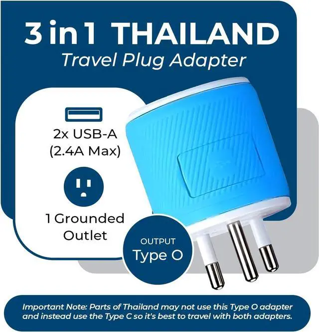 Outlet adapter Type O Plug - works in countries such as Thailand, it is a New standard, so some hotels, or places will still have the Type C socket.