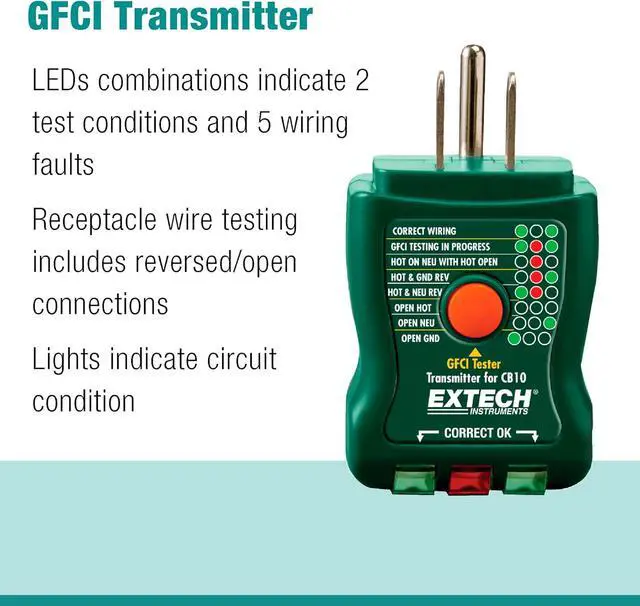 Instant Wiring Diagnostics: The GFCI transmitter doubles as an outlet tester with clear LED indicators. It instantly identifies five common wiring faults like open grounds or reversed polarity, ensuring your home is safe and up to code.