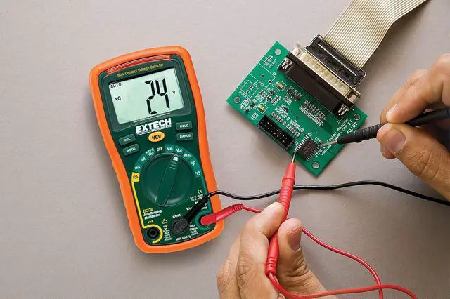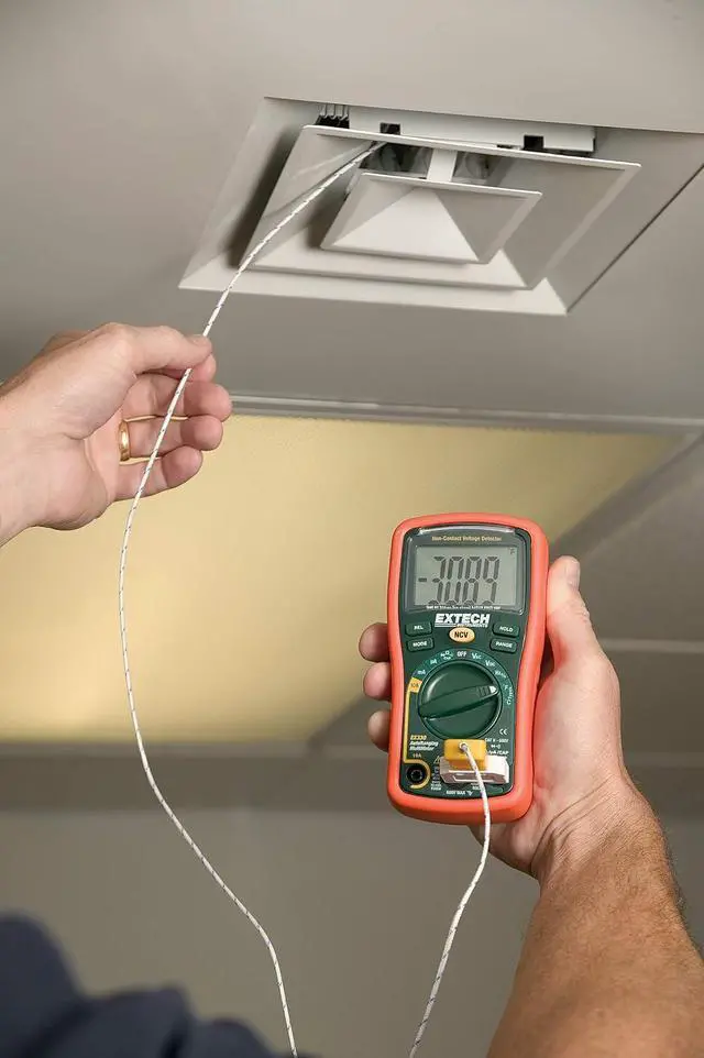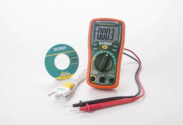 True RMS multimeter measures AC/DC voltage and current, resistance, frequency, duty cycle, capacitance and temperature