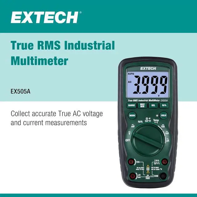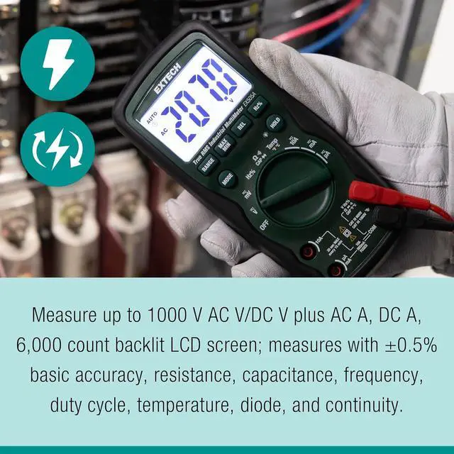 Measure up to 1000V ACV/DCV plus ACA, DCA, Resitance, Capacitance, Frequency, Duty cycle, Temperature, diode and countinuity