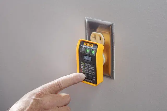 Integrated GFCI test button to verify the correct operation of GFCI equipped outlets