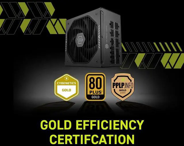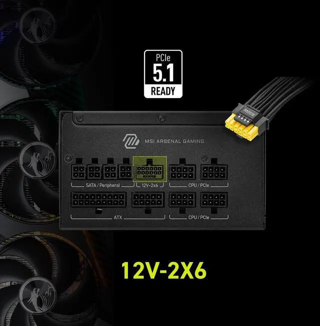 MSI MAG A850GLS PCIE5, Fully Modular Compact Gaming 850W Power Supply, 80+ Gold, ATX 3.1 & PCIe 5.1 Ready, Native Dual-Color 12V-2x6 Cable, Low-Noise, Embossed Jacket Cables, 10 Year Warranty
