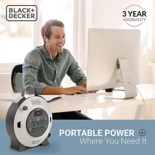 Convenient 4-Outlet Extension Cord: This retractable extension cord reel includes 4 grounded outlets and 2 USB ports (2.1A). Plus, this extension cord reel includes a handy on/off switch to supply reliable power in small spaces, apartments, and more!