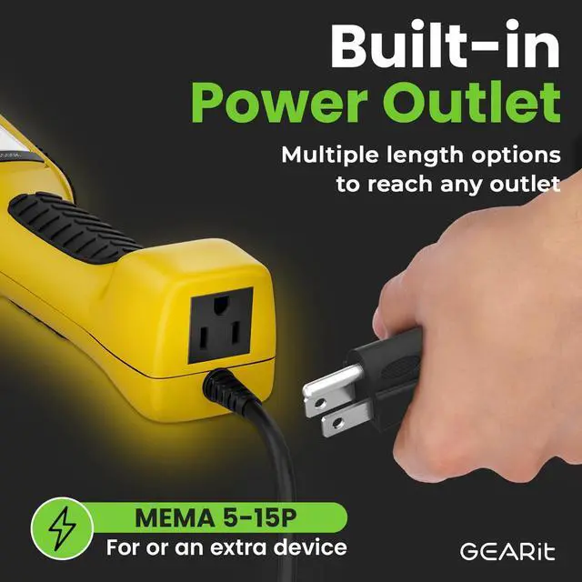 EXTENSION OUTLET - Convenient NEMA 5-15R AC outlet located on bottom of the handle to power an additional device