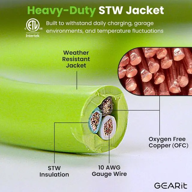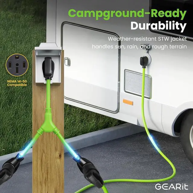 NEMA Connectors. GEARit Y splitter cable cord works with one male 14-50P plug to two female TT-30R receptacles to ensure a secure and reliable connection. ETL Listed for safe performance.