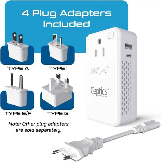 [International Voltage Converter for Travel] Ceptics power converter 220v to 110v comes with a 4.92ft power cord with Type C plug and it also comes with other plug attachments such as Type A, G, I, E/F for worldwide travel. Use in countries like Europe, Germany, France, UK, Ireland, Switzerland, Italy, China, Australia, New Zealand, UAE, Qatar, Oman, Hong Kong, Bangladesh, Indonesia, South Korea, and more.