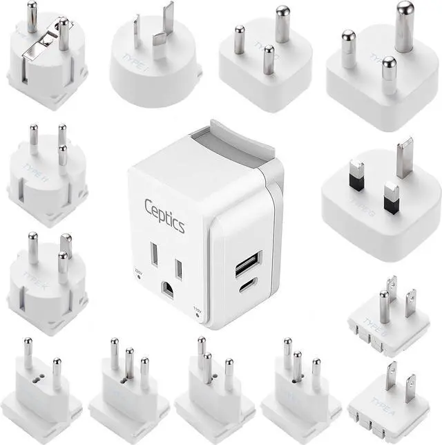 Ceptics International Travel Plug Adapter Set (Type A, B, C, D, E/F, G, H, I, J, K, L, M, N) - 4 in 1 - 2 Canadian Socket - 1 USB & 1 USB-C (3.1A) - Compact & Powerful (PAK-ALL)